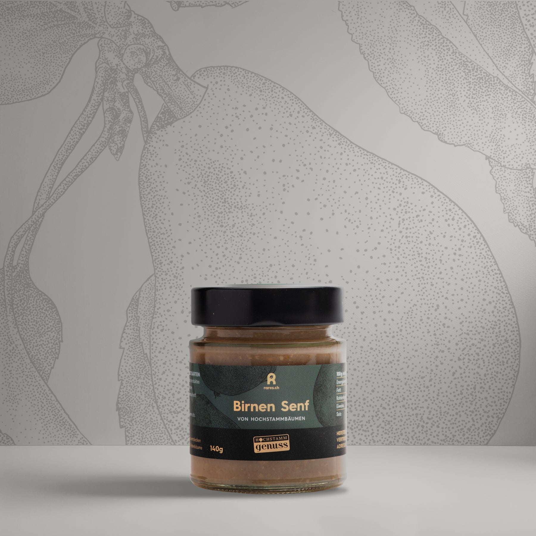 Samtige Birne trifft auf würzigen Senf – eine harmonische Kombination, die sowohl zu Käse als auch zu Fleischgerichten wunderbar passt.