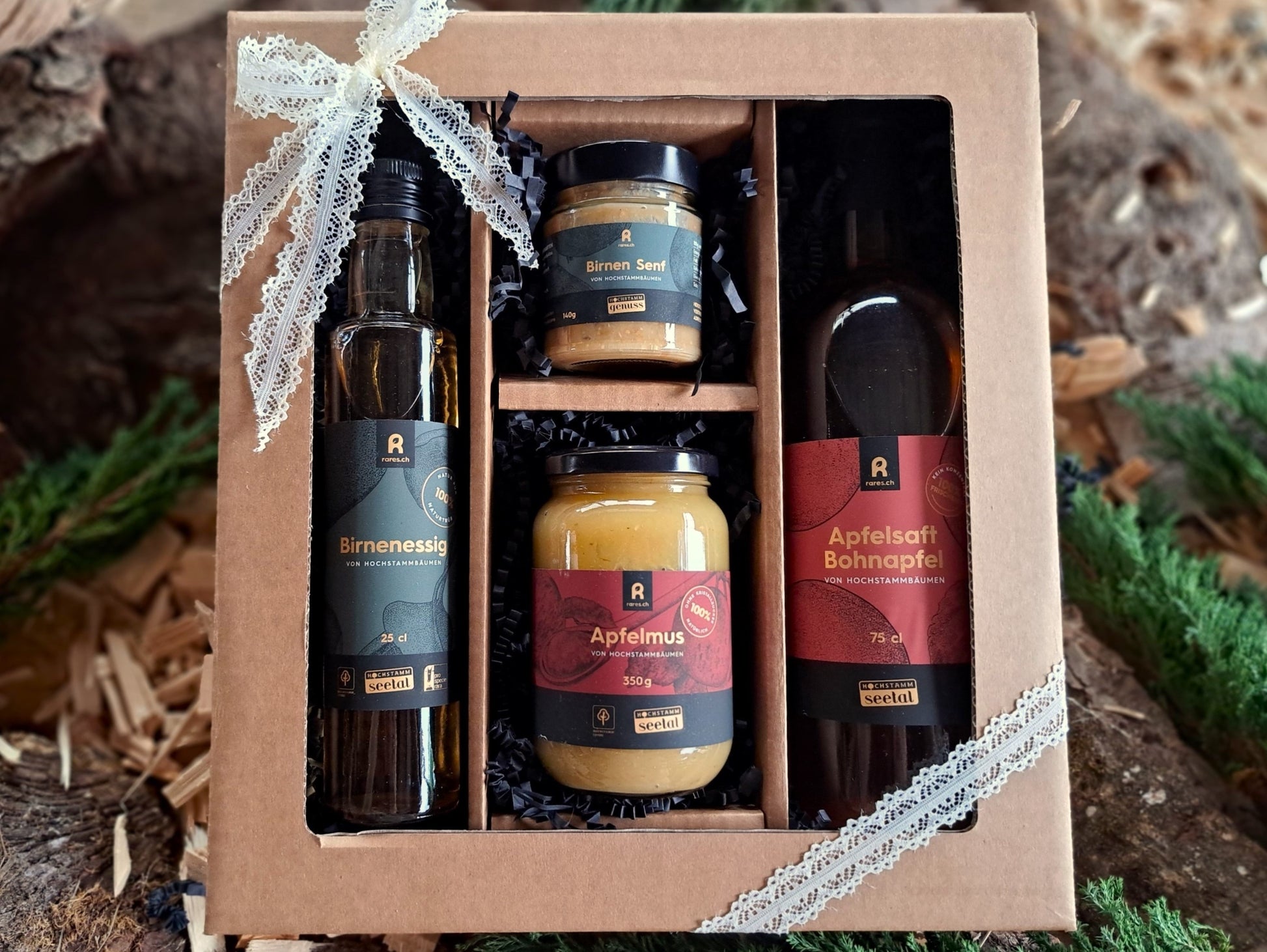 Die Sorten von Konfitüre, Senf, Essig, Balsamico und Saft sind nach Wunsch wählbar!