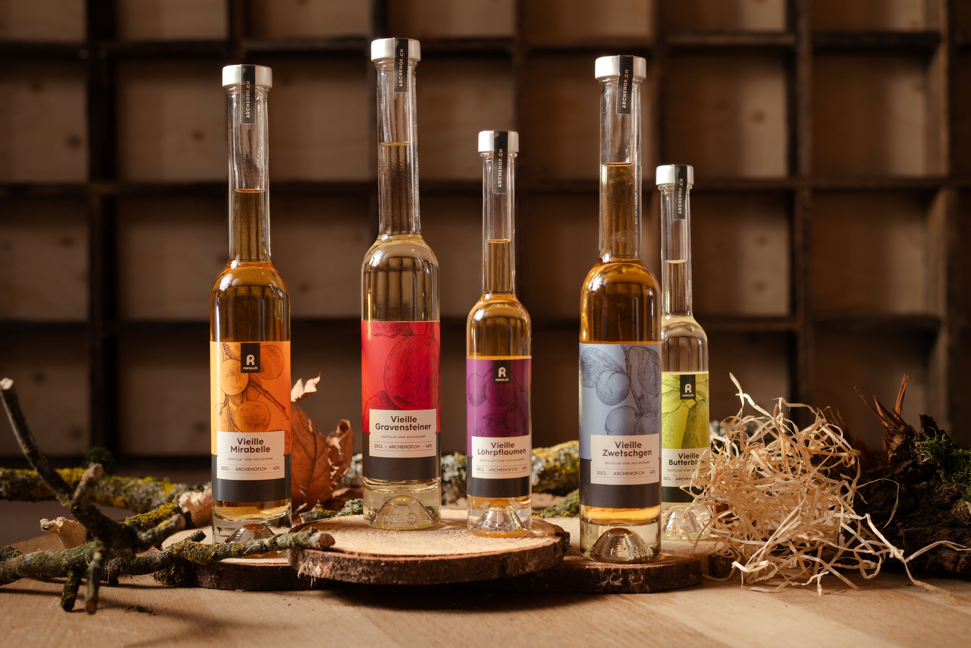 Dieser Apfellikör beinhaltet verschiedene Apfelsorten vom Archehof. Durch die Beigabe von Fruchteinlagen (Dörrfrüchte), Gewürzen und Essenzen wird die typische Aromabildung unterstützt und es entsteht ein natürliches, farbiges Destillat. Unsere Liköre sind aromatische Spirituosen mit einem höheren Zuckergehalt als unsere Vieilles. Der Alkoholgehalt liegt bei 28% Vol.