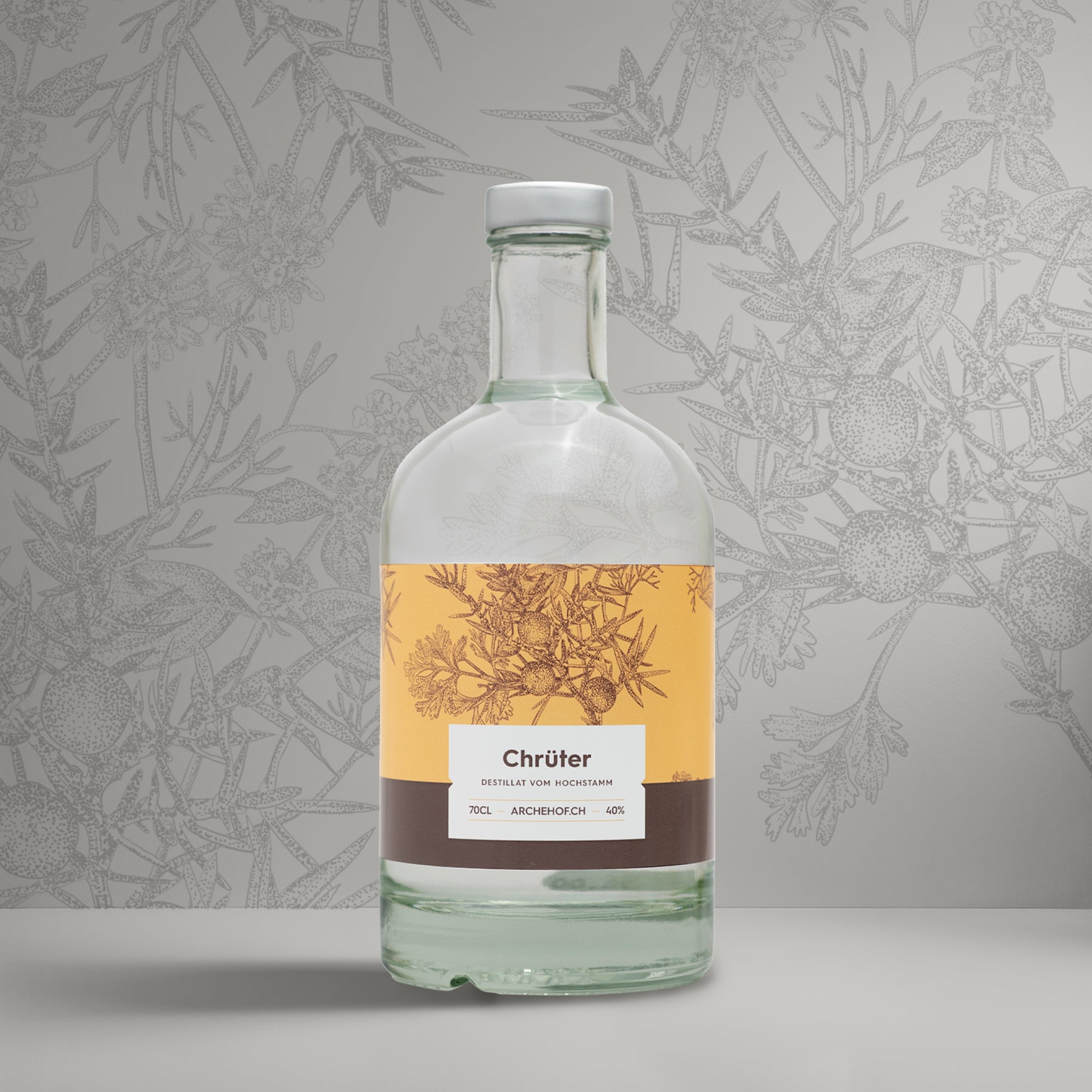 Unser Kräuterschnaps ist ein klarer Kernobstschnaps, der mit einer Kräutermischung ein zweites Mal gebrannt wird. Anis und Kümmel sind für die Kräutermischung unentbehrlich. Die restlichen Zutaten und die genaue Mischung bleiben aber unser Geheimnis. Der Kräuterschnaps, bei uns einfach Chrüter genannt, ist ein traditioneller Schweizer Schnaps. Kafi Chrüter empfehlen wir als Medizin, dies besonders bei Erkältungen.