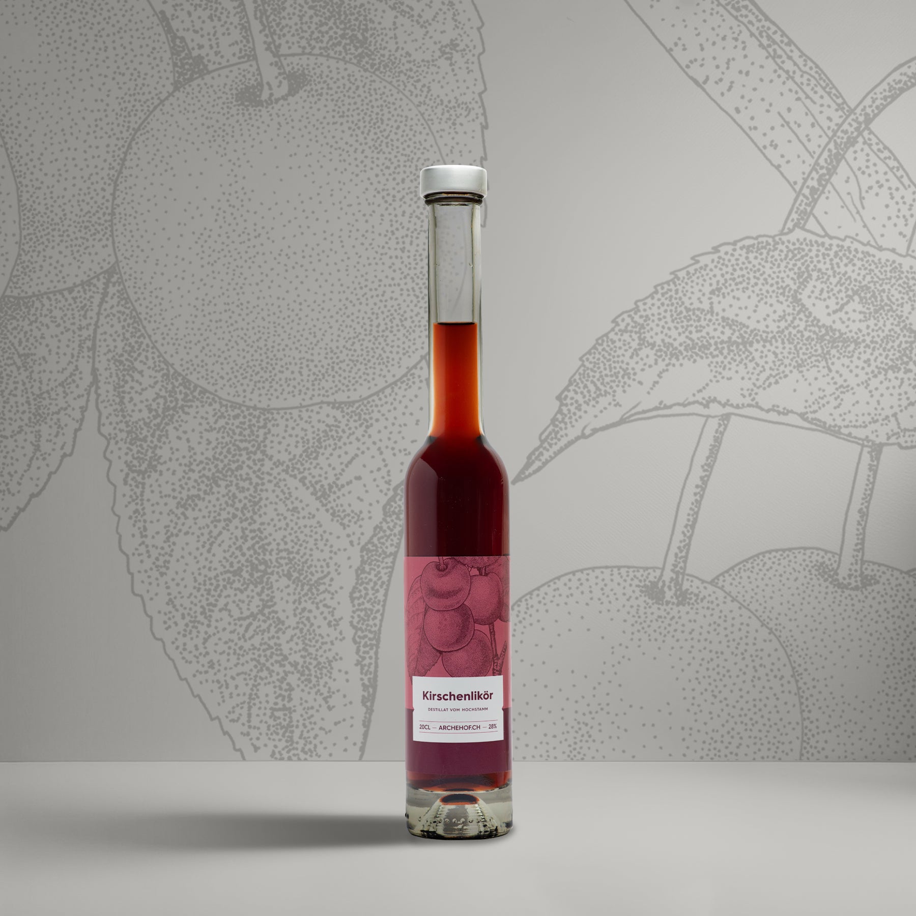 Dieser Kirschenlikör beinhaltet über 100 verschiedene Kirschensorten. Durch die Beigabe von Fruchteinlagen (Dörrfrüchte), Gewürzen und Essenzen wird die typische Aromabildung unterstützt und es entsteht ein natürliches, kirschenfarbiges Destillat. Unsere Liköre sind aromatische Spirituosen mit einem höheren Zuckergehalt als unsere Vieilles. Der Alkoholgehalt liegt bei 28 % Vol.