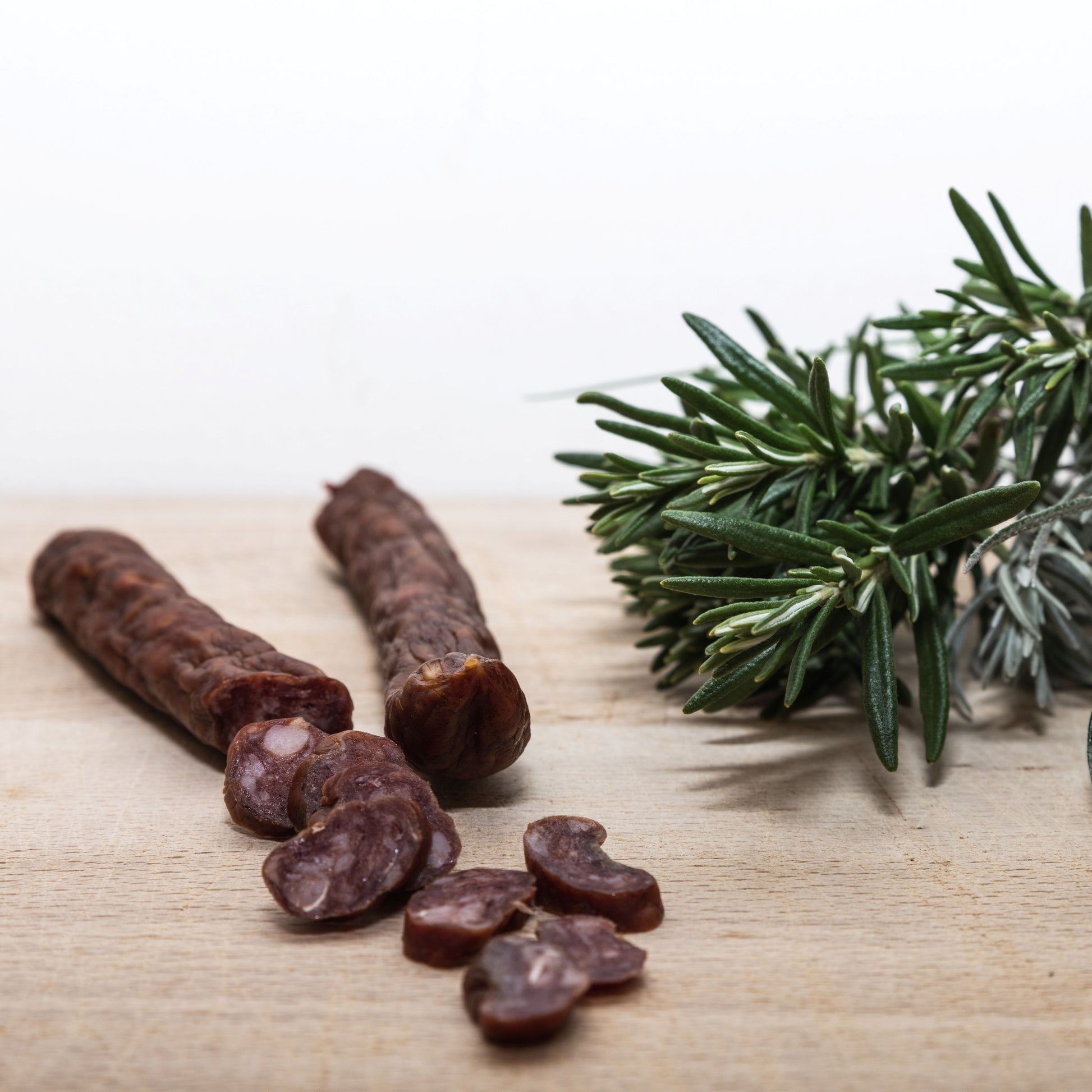 Unsere Wanderwürstli vom Rätischen Grauvieh sind der perfekte Begleiter für unterwegs – herzhaft im Geschmack, traditionell geräuchert und mit viel Sorgfalt hergestellt. Ob für die Wanderung, als Snack oder zum Znüni– diese Trockenwürste stehen für echten Genuss aus nachhaltiger Landwirtschaft.